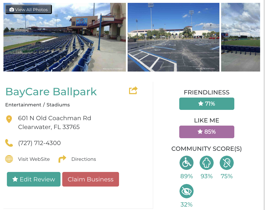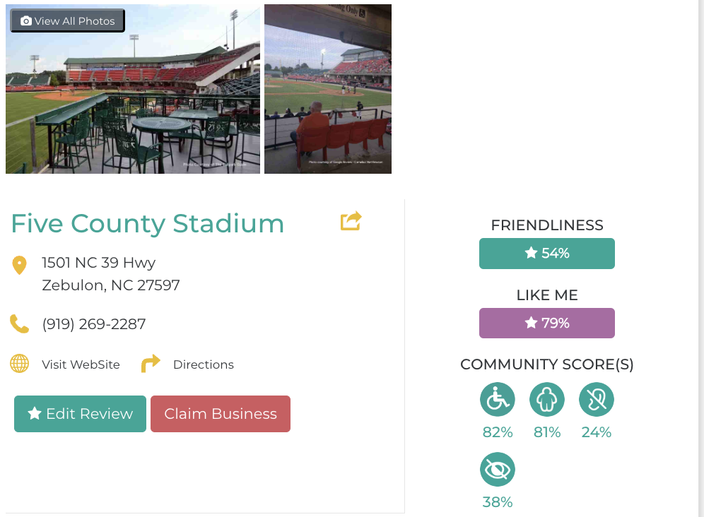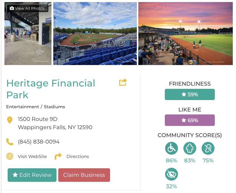 Note that the community icons and listings you see below are ever-changing when we add amenities, communities, and of course, when we receive new reviews! If you see a score and have questions about it, visiting the link to learn more may help. Screenshots are taken to preview the state the listing was in upon review, but those numbers can change based on how much we learn about locations and community access needs going forward.